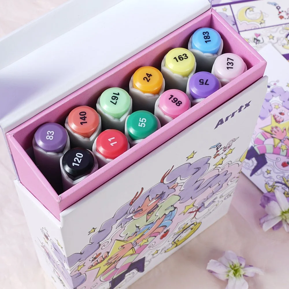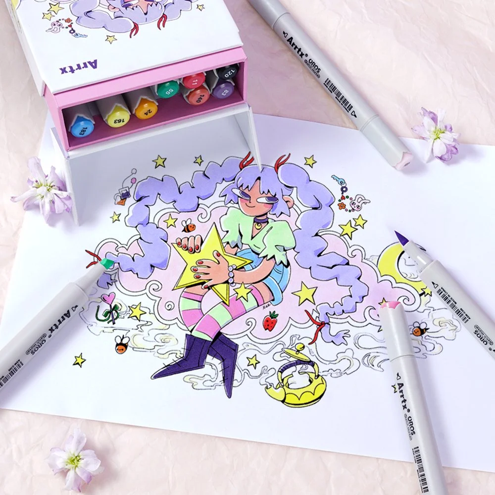 After many collaboration opportunities with the best-selling art materials brand Arrtx, they asked me to create my own set of high-quality alcohol markers with them. I designed the illustrations for the box, carefully selected the colors of the markers included in the set, and had the joy of working with their wonderful team.